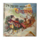 Ilustración vintage de la era victoriana diseño de vacaciones de Navidad con arte de portada de La noche antes de Navidad con San Nicolás en un techo con su trineo y renos en Nochebuena.