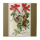 Un gran hueso está atado a una herradura dorada con cintas rojas para la buena suerte. En el fondo, hay unas bayas y unas hojas de mistletoe. Saludo: Una Feliz Navidad. Imagen de la postal navideña vintage de Ellen Clapsaddle con un borde amarillo de bronce personalizado.