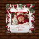 Dale a un ser querido el regalo de siempre con esta bella cerámica con un fondo de tablero rojo, blanco y verde y una foto y texto de invitación de recién nacido