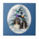 Hermoso arte navideño con un elegante shih tzu posando bonito frente a un árbol navideño decorado con árboles de Navidad. Grandes regalos para los amantes del shih tzu. Tarjetas de navidad, ornamentos, ropa y más