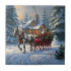 Santa conduciendo un trineo de un caballo para entregar regalos de Navidad en un pequeño pueblo