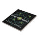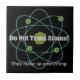 Diseño de baldosas divertidas con simple gráfico de átomo y divertido cita de chiste "No confíes" sobre fondo negro