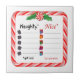 Utilice esta baldosa personalizado como tribuna o para mejorar su decoración de vacaciones. Aquí hay una linda menta de menta y una lista de Navidades de caña de caramelos para ayudar a Santa Claus a seguir la pista de quién es Naughty o quién es Niza! Recuerda... La traviesa se vuelve CARBÓN. ¡La Niza recibe a los PRESENTES! ¡Un toque divertido perfecto para tu fiesta de vacaciones en casa o en la oficina!