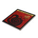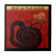 En un cuadrado hay un papel de serpiente negro cortado, colocado en el centro mirando un adorno dorado dentro del cual está la segunda serpiente con ideograma. Detrás de la escena hay un fondo rojo en el que las letras decorativas y ornamentadas forman las palabras: AÑO DE LOS APERITIVOS. Diseño de cerámica cuadrada sobre fondo negro. Tarjeta de felicitación coincidente, postal de vacaciones, suministros para fiestas y más... Perfecto para el Año Nuevo Chino de la Serpiente 2025 o cumpleaños (personas nacidas en Año Serpiente). — "La serpiente (蛇) es la sexta del ciclo de doce años de animales que aparecen en el zodiaco chino relacionado con el calendario chino. Según una leyenda, hay una razón para el orden de los animales en el ciclo. Se realizó una carrera para cruzar un gran río, y el orden de los animales en el ciclo se basó en su orden para terminar la carrera. En esta historia, la serpiente compensó por no ser la mejor nadadora al dar un paseo oculto en la pezuña del caballo. Cuando el caballo estaba a punto de cruzar la línea de meta, la serpiente saltó, asustando al caballo y, por lo tanto, posando para el sexto lugar. Se puede decir que las personas nacidas en esas fechas han nacido en el "Año de la Serpiente", aunque también llevan la siguiente señal elemental: 10 de febrero de 1929 - 29 de enero de 1930 = Serpiente de la Tierra 27 de enero de 1941 - 14 de febrero de 1942 = Serpiente Metalizado 14 - 2 1954 = Serpiente de agua 2 de febrero de 1965 - 20 de enero de 1966 = Serpiente de madera 18 de febrero de 1977 - 6 de febrero de 1978 = Serpiente de fuego 6 de febrero de 1989 - 26 de enero de 199900 = Serpiente de la Tierra 1 febrero 2002 = Serpiente Metalizado 10 febrero 2013 - 30 enero 2014 = Serpiente de agua 29 enero 2025 - 16 febrero 2026 = Serpiente de madera 15 febrero 2037 - 3 febrero 2038 = Serpiente de fuego.... (Wikipedia)
