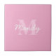 Azulejo Nombre curvo y monograma de aspecto corto | Rosa