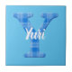 Nombre de los niños con la letra Y inicial. Impresión de patrón de manchas azules. Baldosas de cerámica decorativas para la habitación de los niños. El texto se puede editar para hacer que este mosaico sea único.