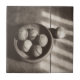 "Nostalgia de béisbol II" por Judy B. Messer. Cuenta con una fotografía sepia de varias pelotas de béisbol.