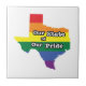 Esta colorida obra de arte muestra el estado de Texas creado a partir de un arco iris.