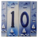 Delfines, veleros y faros de estilo azul dibujados a mano, con el número 10 hace este auténtico diseño de estilo holandés.