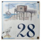 Una gaviota observa el final de las actividades del muelle a orillas del mar. Un estilo de porcelana holandesa está decorado con baldosas que se adaptan a cualquier decoración... también hay un trivet de mar si lo prefieres. Y una placa con número de casa bastante fina.