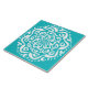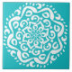 Esta mandala blanca se asienta sobre un fondo turquesa. Los colores son muy tranquilos y relajantes. Parte de la colección Kylgh Mandala.