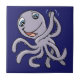 ilustracion personalizado de un pulpo sobre una baldosa azul. ¡Cambia el color de fondo!