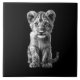 Cortar el pequeño cubo de león gris monocromo en negro