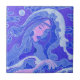 Baldosa cerámica con ilustracion de cuento de hadas, hermosa princesa asiática de agua saliendo de la espuma marina, cielo con estrellas, nubes y luna llena detrás de ella. Azul, violeta y rosa. Arte de fantasía, temática de sirena, pintura acrílica. © Clipso-Callipso / Julia Khoroshikh #clipsocallipso #mermaid #mermaidart #waterSpiri#nymph #siren #asiangirl #wave #fairytale #fantasyart #pintura #acrylicpainting #surrealart
