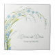 Baldosas de cerámica con un elegante ramo de flores suaves azules olvidadas-no-con hojas verde claro y tallos curvos, colores pastel naturales primaverales o veraniegos, un romántico ramo de flores silvestres. acuarela digital botánica. Cuta flor botánica cerámica. Colección Olvidar No.