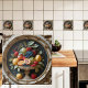Sumérjase en una escena de abundancia atemporal con el Golden Orchard, una creación de IA realzada digitalmente rica en encanto clásico. Esta baldosa de cerámica tiene un arduo arreglo de frutas (uvas, bayas, melocotones, cítricos y peras) que se desborda de un tazón peatonal y se acristala con una corona de oro de tono majestuoso. La composición se enmarca con detalles intrincados de flores y hojas, mientras que un fondo oscuro y moreno añade dramatismo y contraste que permite que los colores vibrantes se vuelvan visibles. Perfecto para cocinas, bodegas o elegantes comedores, este diseño ofrece una sofisticada fusión de tradición de vida muerta y moderna artesanía digital.