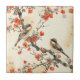 A delicate Chinoiserie-inspired seamless pattern ceramic tile featuring two graceful songbirds perched on blossoming plum branches. Rendered in a soft watercolor style with warm shades of orange, cream, and brown, this design evokes the serenity and charm of traditional East Asian art. This pattern brings an elegant balance of nature, artistry, and timeless beauty.