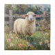 Azulejo Oveja de primavera con pintura de flores silvestre