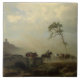 Azulejo Paisaje con ruinas de castillo y paseos a caballo