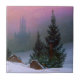 Cubierta cerámica que presenta el paisaje invernal de pintura al óleo de Caspar David Friedrich (1811). Nieve y pinos llenan el paisaje. Un joven reza sobre una roca a la Santa Cruz. Una iglesia aparece en la niebla. ¡Un maravilloso regalo de Navidades!