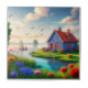 Azulejo Paisaje natural con cabaña y lago,-434567