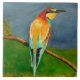 Esta es una impresión de una de mis propias pinturas; la original se hizo en acrílico sobre lienzo. Las coloridas plumas de pájaro (un pescador de reyes) con la luz del sol en la espalda, contrastan con las nubes de tormenta que se acercan.