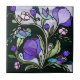Azulejo Pájaros verdes y flores violetas de estilo cristal