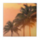 Esta foto ofrece las palmeras en una puesta del sol de Miami.