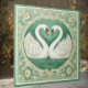 Azulejo Pareja de cisnes verdes con motivos florales de la