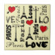 Diseño de texto de París para El día de San Valentín con formas de corazón rojo, Torre Eiffel y lámparas de calle con fondo amarillo