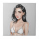 Un impresionante chica de piel blanca con una belleza cautivadora, con un bikini blanco y vello de hombro.