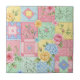 Soft pastel patchwork ceramic tile featuring delicate roses, gingham checks, and vintage cottage charm. A light, cheerful pattern ideal for floral lovers, cottagecore fans, and farmhouse decor enthusiasts. Perfect as a charming gift for moms, gardeners, bakers, or vintage style lovers