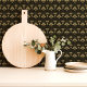 Añada glamour a su espacio con este impresionante azulejo Art Deco que presenta un fondo negro elegante adornado con patrones de abanico dorados. El diseño simétrico y los detalles geométricos audaces capturan la esencia de la elegancia de la década de 1920, lo que lo hace perfecto para salpicaderos, paredes de acento o proyectos de decoración interior sofisticados.