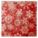Patrón de copos de nieve. Patrón sin foco con esponjosos copos de nieve blancos sobre un fondo rojo.
