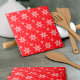 Patrón lindo, divertido y adorable con copos de nieve blancos sobre fondo rojo. Un regalo moderno y de moda, perfecto para los amantes de la nieve en su vida.
