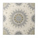 Azulejo de cerámica con patrón de mandala en gris y dorado