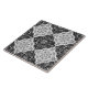 Esta cerámica sin fisuras presenta baldosas de motivos marroquíes en blanco y negro.
