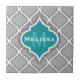 Elegante entramado marroquí gris claro y blanco con una elegante placa de azulejos azul verde azulado. Un diseño de moda, de moda, de estampado de relicario que haría un regalo fresco a medida.