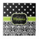 Patrón elegante de damasco blanco y negro con un patrón de puntos de polka. Este moderno regalo de niñera cuenta con una placa con el nombre y el monograma de su personalizable en blanco, verde y negro. Esto haría un regalo de cumpleaños genial para los chicas o un regalo de Navidad para ella. Más opciones de color