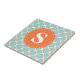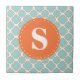 Azulejo Patrón de quatrefoil Naranja turquesa con monogram
