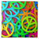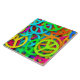 Baldosa cerámica con un ambiente de los años 60. Las señales de paz de Guay en colores brillantes y vibrantes con todos los colores del arcoiris.