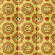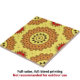 Es una cerámica cuadrada cautivadora que tiene un diseño de mandala intrincado. El diseño se caracteriza por la simetría radial y se sitúa sobre un fondo cálido de color dorado-amarillo. El patrón de mandala es detallado y fascinante, poniendo la atención en su centro. Las capas de patrones en tonos marrones tierra añaden profundidad e interés visual a la baldosa, mientras que los brotes de elementos rojos intercalados en el diseño proporcionan un contraste sorprendente. Las formas triangulares pequeñas bordean algunos elementos del patrón, mejorando su complejidad y añadiendo a su estética general, que recuerda a la artesanía tradicional o étnica.