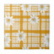 Baldosas de cerámica de patrón luminosas y alegres con flores blancas y estilizadas de estilo margarita con centros amarillos soleados sobre un cálido fondo de gingham amarillo y blanco roto. Perfecto para los diseños retro, rústico e inspirado en la primavera, esta fresca y divertida huella floral aporta un toque de encanto soleado a cualquier entorno.