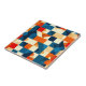 Patrón geométrico abstracto colorido con tonos vivos de azul, naranja y crema, evocando el estilo y el diseño artístico moderno. La composición presenta simetría y equilibrio estético, perfecto para diversas aplicaciones de diseño.