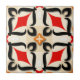 Diseño cerámico elegante y moderno con formas geométricas en rojo, negro, naranja, blanco y beige.
