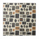 Azulejo de cerámica de patrón geométrico terroso inspirado en textiles tribales de tela de barro, con rectángulos, diamantes y triángulos pintados a mano en negro carbón y terracota sobre un fondo beige texturizado. Un diseño boho cálido ideal para amantes del decorado rústico, fanáticos del estilo artesanal y cualquiera atraído por la estética geométrica terrosa.