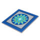 Baldosas cerámicas de doce puntos de Mandala en azul turquesa, gris / gris, tostado, crema y cobalto con fondo gris plateado claro bordeado de azul cobalto