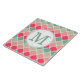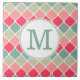 Para cambiar el tipo de letra, el color, el tamaño y la posición de su letra monogramada, haga clic en el botón Personalizar It!. Elegante, lindo y femenino, rosa, blanco y verde trenecito marroquí de enrejado de azulejos trellis diseño con un diseño moderno y elegante de marco de placa de nombres de círculo que aparece en el centro de este diseño personalizado donde se puede personalizar fácilmente su original carta de monograma personal. Este regalo de patrón fresco y ondulante está disponible en colores alternativos.