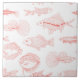 Patrón vectorial dibujado a mano con varios peces en color de coral vivo y fondo blanco.