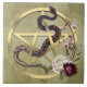Azulejo Pentáculo dorado y serpiente con Rosas Altar pagan
